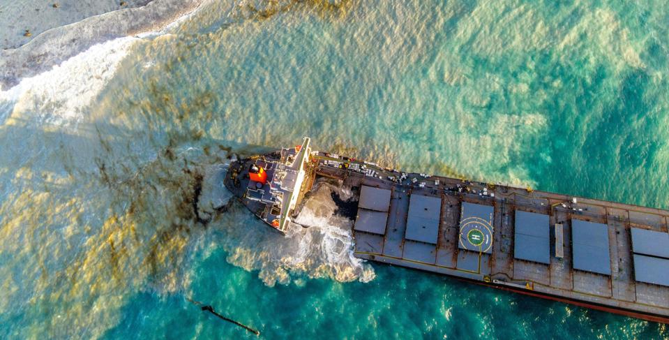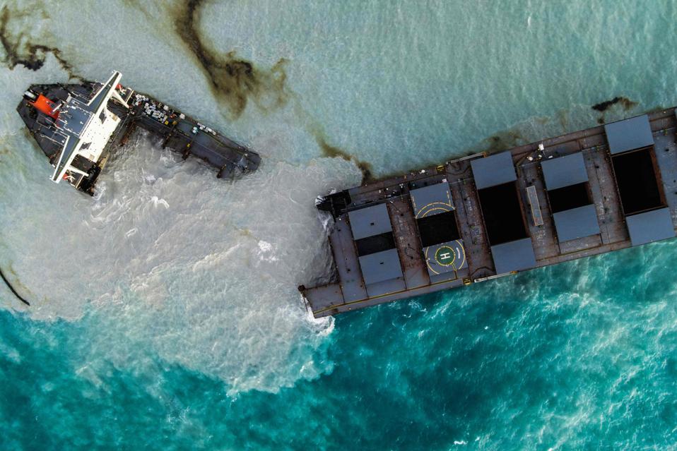 A ship that has leaked more than 1,000 tonnes of oil in pristine waters off the Mauritius coast has split into two, its Japanese operator said August 16, 2020.