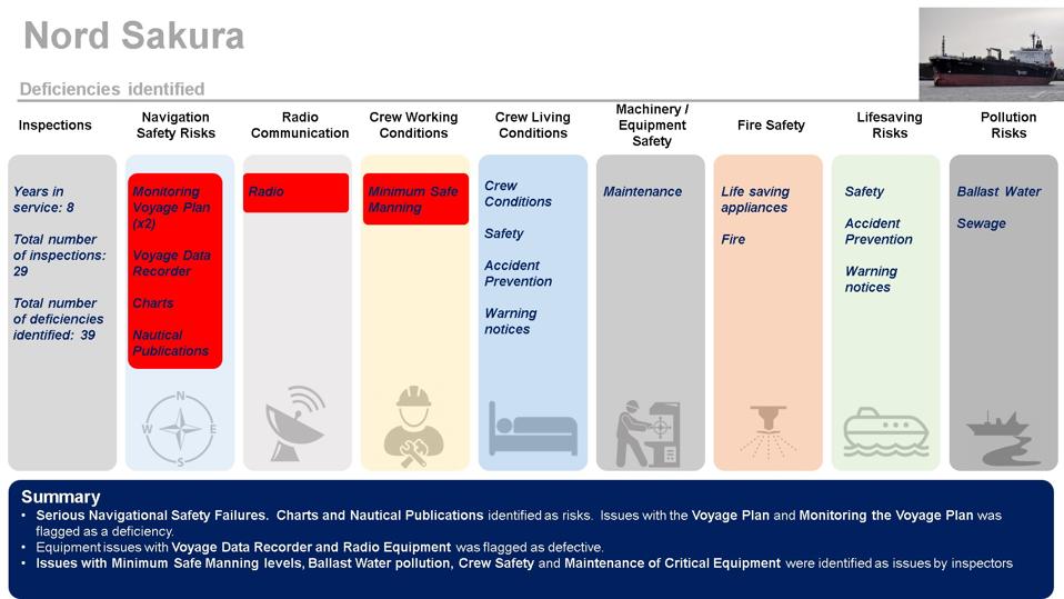 Serious navigational safety failures were identified for the Nord Sakura in only 8 years of service SOURCE: EQUASIS