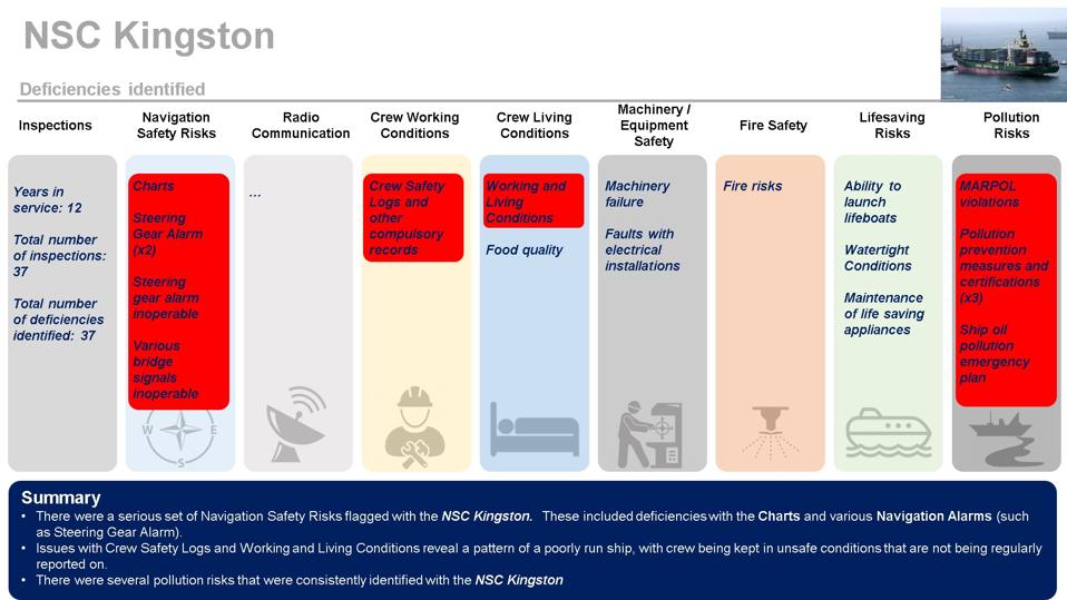 The NSC Kingston had a series of Navigation Safety risks flagged, including with its Electronic Charts SOURCE: EQUASIS