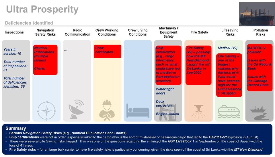 The Ultra Prosperity had issues raised with its Nautical Publications and Electronic Charts on multiple occasions in addition to other serious safety concerns