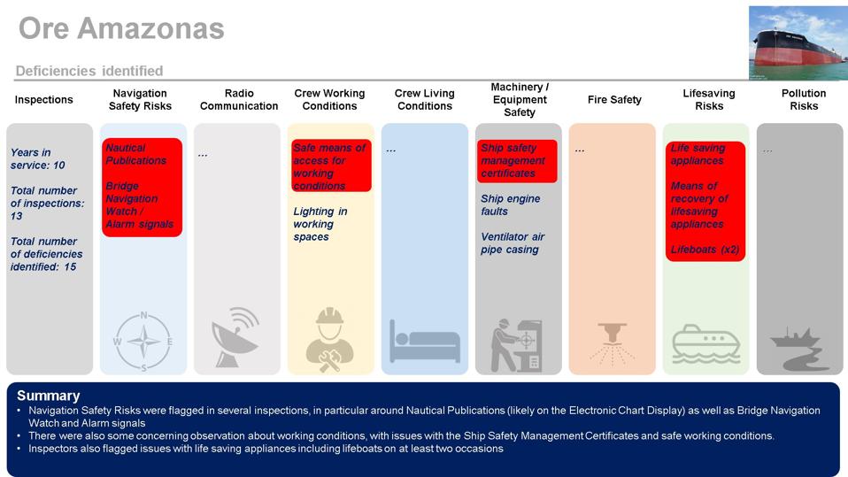 The sort of data from previous inspections is publicly available on EQUASIS, and will likely form an important part of the inquiry’s findings.