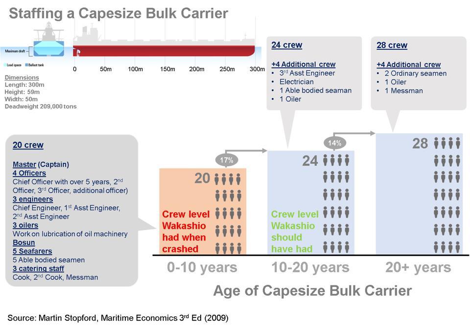 The Wakashio was already 17% understaffed relative to industry norms for a 13-year old Capesize Bulk Carrier.