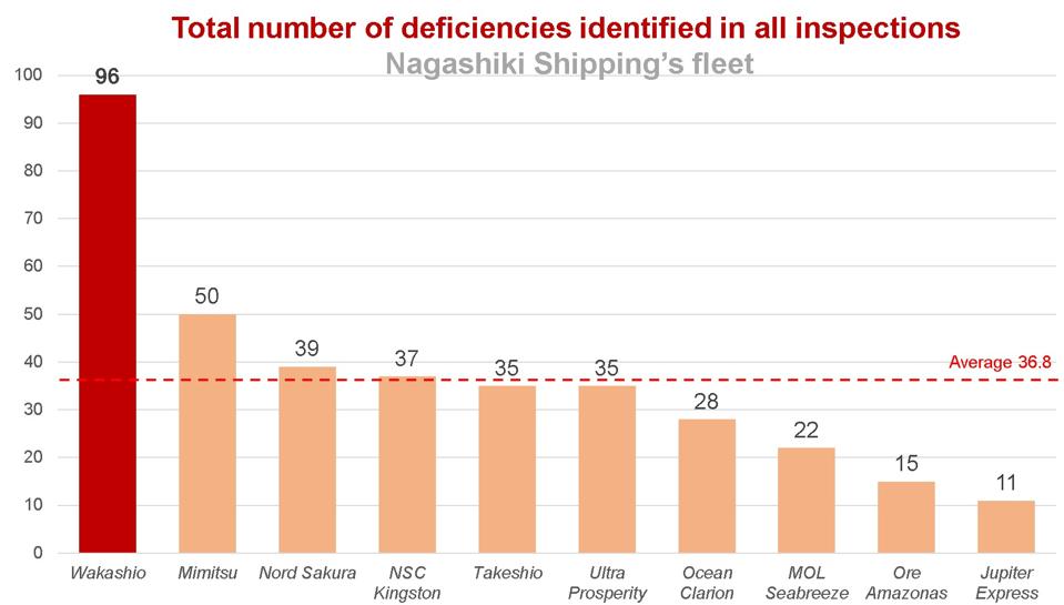 The Wakashio had double the number of deficiencies than the average of Nagashiki Shipping’s fleet.