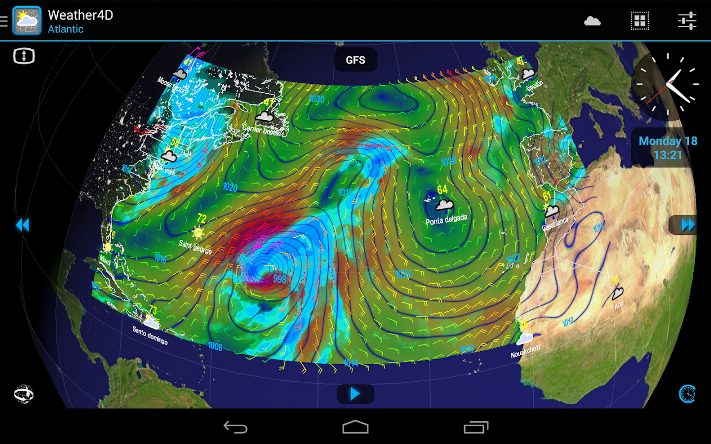Weather4D is the first application to animate the weather like a video.