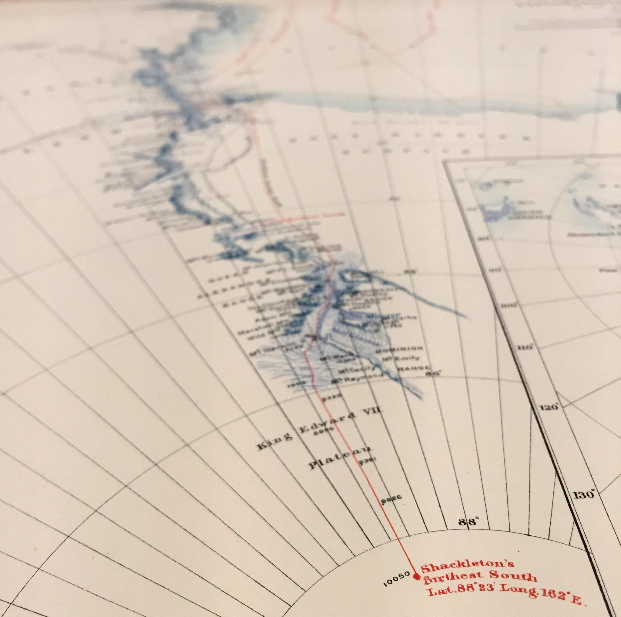The London version of the show includes 97 Hurley photographs along with objects such as a Union Jack presented to Shackleton by King George V and meant to be flown at the South Pole.