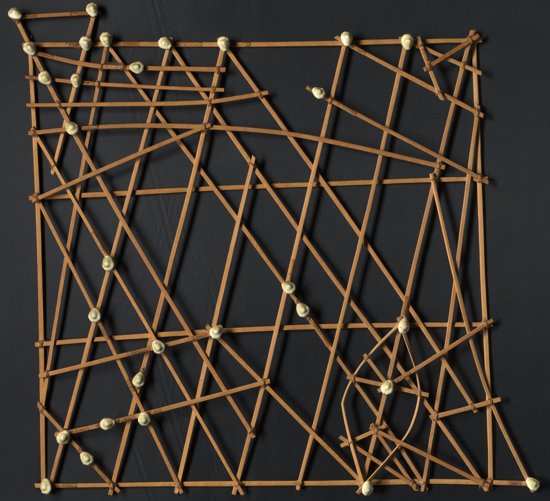 “They’re thin pieces of coconut wood put together in a sort of lattice like a cat’s cradle and wherever there was an atoll they’d lash on [a] little cowrie shell to represent that island.