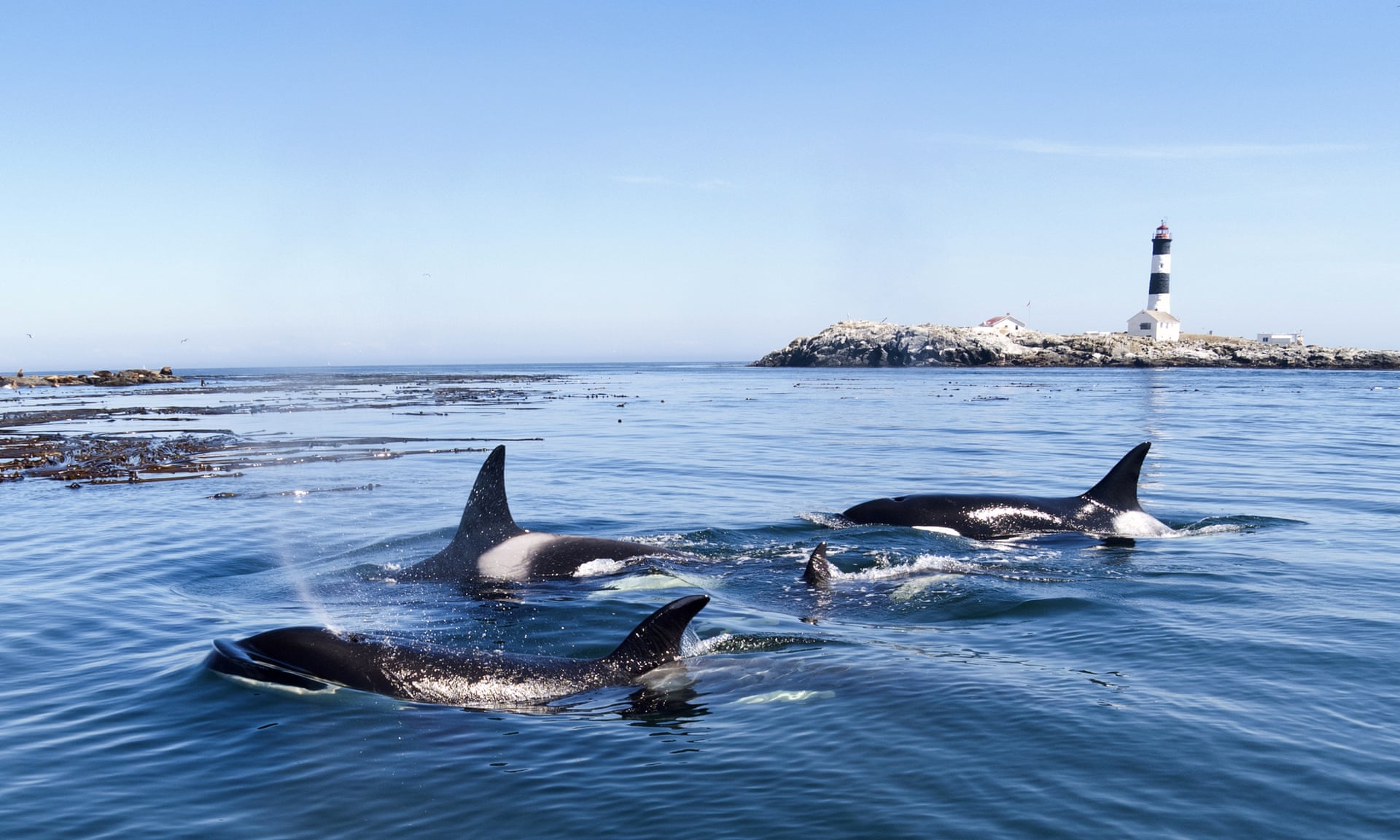In the deep: a pod of highly intelligent killer whales, or orcas.