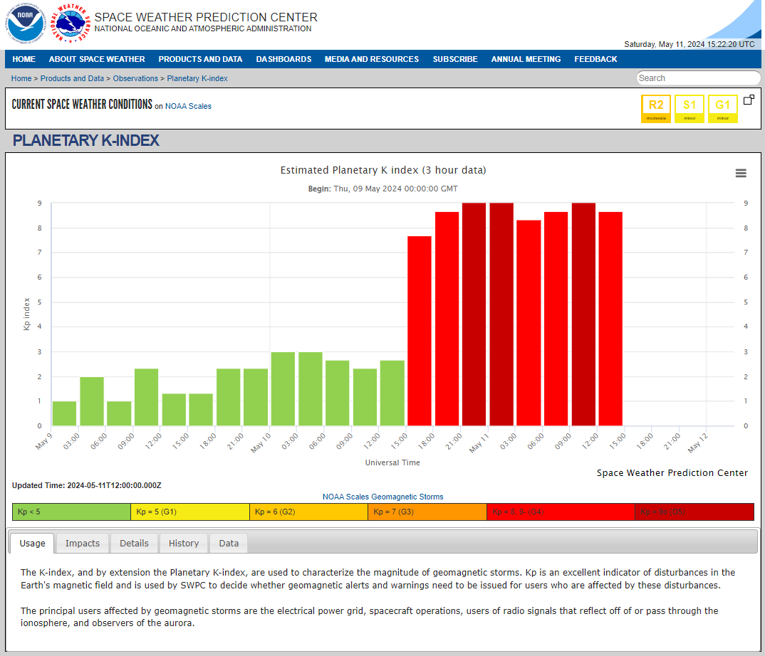 - Earth : Another "Extreme" and very rare G5-level solar storm hits Earth on Saturday / "Severe Geomagnetic Storm" hits Earth, NOAA warning in effect all weekend