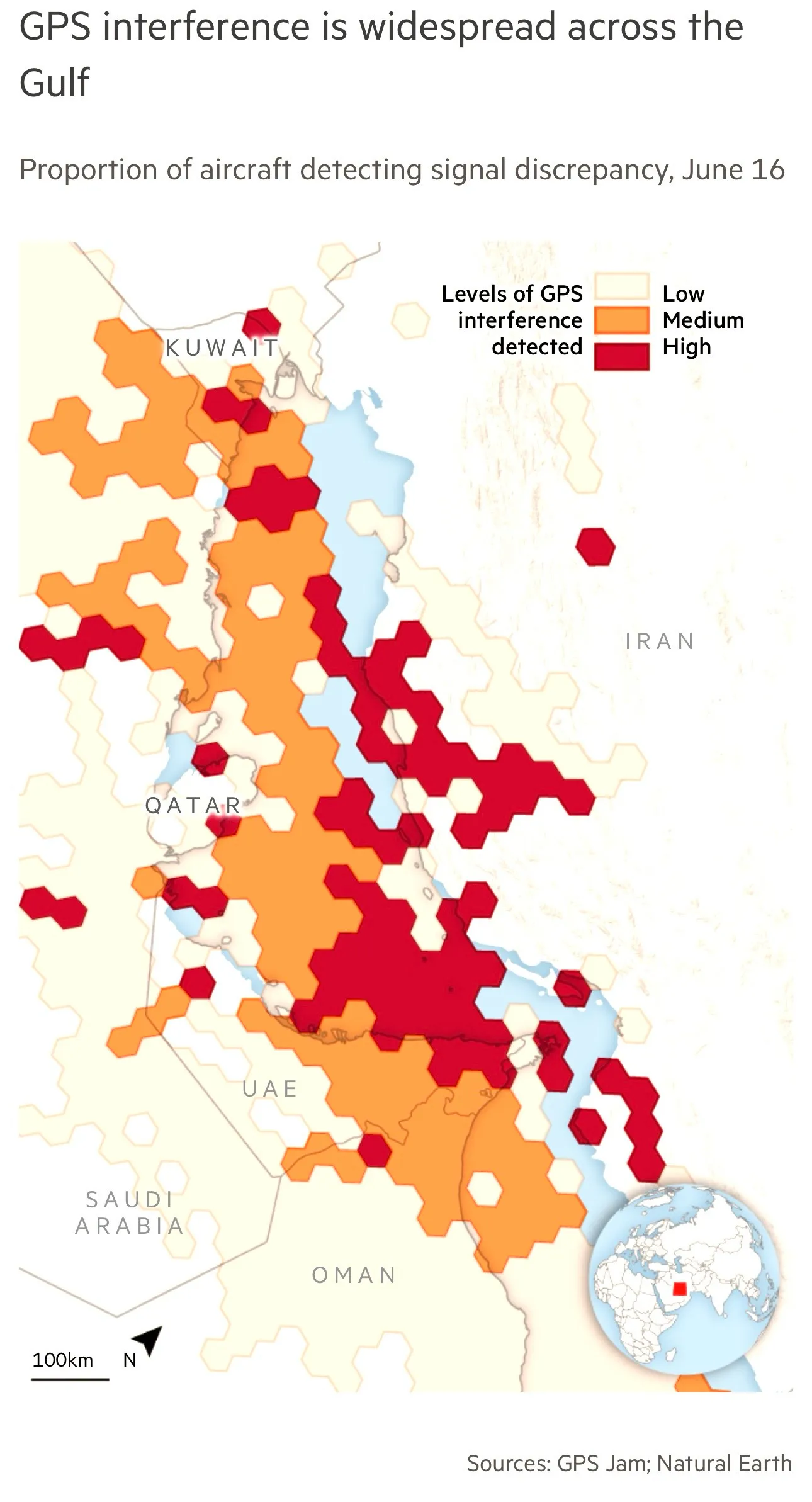 Data from aircraft can reveal when GPS jamming is happening but with the airspace over Iran now closed, Gorman has had to find other sources.